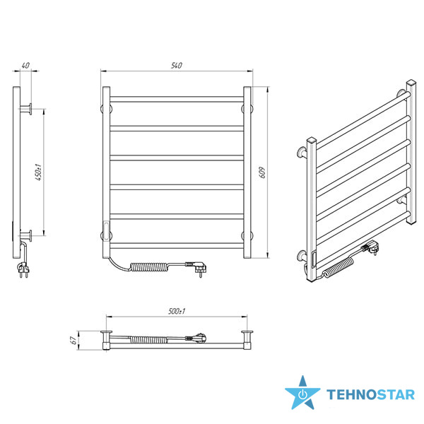 Особливості: керує нагрівом електрорушникосушарки мікропроцесорний термоконтроллер (кнопкове управління). Для початку роботи необхідно задати температуру рушникосушарки. Термодатчик контролює температуру поверхні рушникосушарки, що виключає можливість її перегріву. Серед переваг регулятора - зберігання обраного режиму роботи (при відключенні робота відновитися в запрограмованому користувачем режимі), наявність таймера відключення (3h) і колірної індикації роботи!