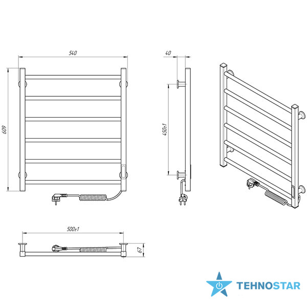 Особливості: керує нагрівом електрорушникосушарки мікропроцесорний термоконтроллер (кнопкове управління). Для початку роботи необхідно задати температуру рушникосушарки. Термодатчик контролює температуру поверхні рушникосушарки, що виключає можливість її перегріву. Серед переваг регулятора - зберігання обраного режиму роботи (при відключенні робота відновитися в запрограмованому користувачем режимі), наявність таймера відключення (3h) і колірної індикації роботи!