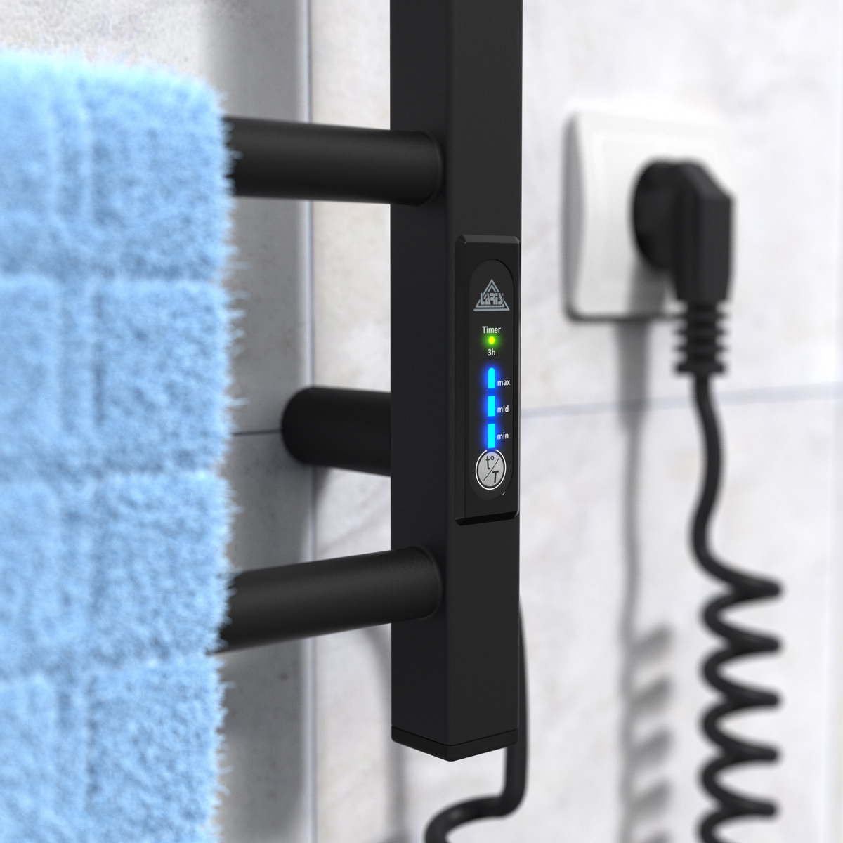 Особливості: керує нагріванням електрорушникосушки мікропроцесорний термоконтролер (кнопкове управління). Для початку роботи необхідно задати температуру сушки для рушників. Термодатчик контролює температуру поверхні рушникосушарки, що виключає його перегрів. Серед переваг регулятора - збереження обраного режиму роботи (при відключенні робота відновиться у запрограмованому користувачем режимі), наявність таймера відключення (3h) та колірної індикації роботи!
