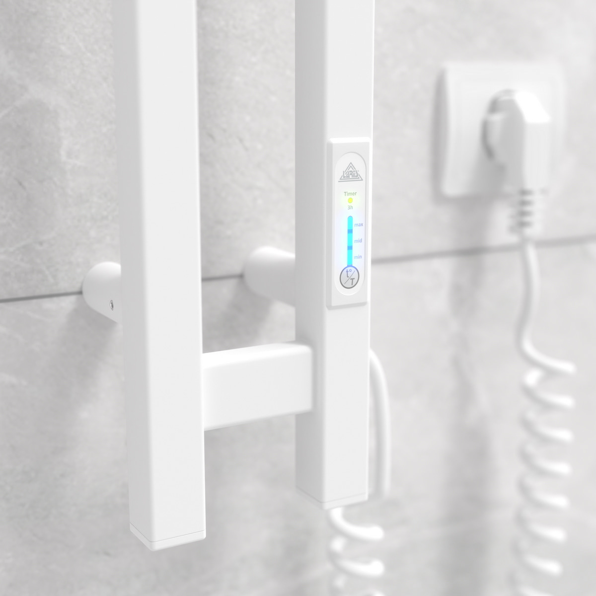 Особливості: керує нагріванням електрорушникосушки мікропроцесорний термоконтролер (кнопкове управління). Для початку роботи необхідно задати температуру сушки для рушників. Термодатчик контролює температуру поверхні рушникосушарки, що виключає його перегрів. Серед переваг регулятора - збереження обраного режиму роботи (при відключенні робота відновиться у запрограмованому користувачем режимі), наявність таймера відключення (3h) та колірної індикації роботи!