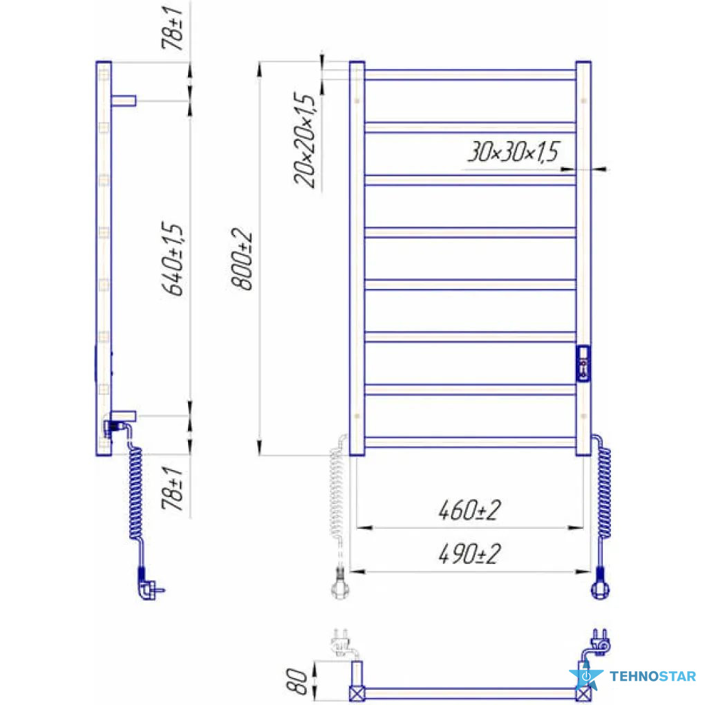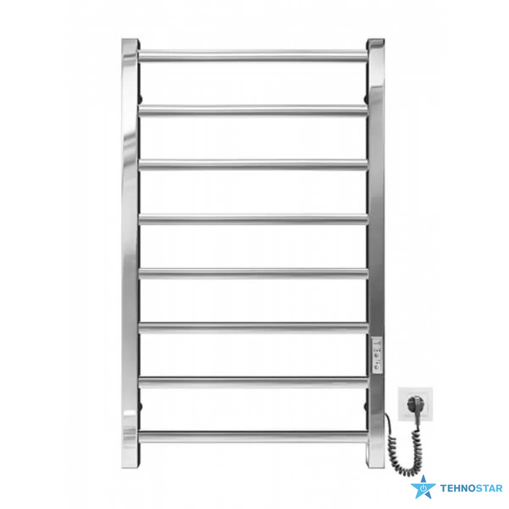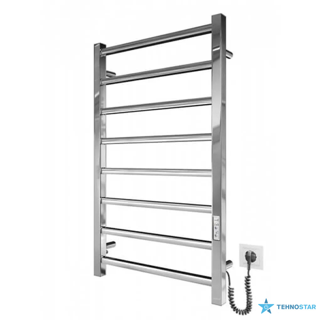 Електросушарка для рушників побутова Токіо-I 800х500/80 TR К. Обладнана таймером-регулятором і конектором для підключення в розетку з будь-якого боку. Сумісна з комплектом прихованого підключення. Має 8 ребер і стійок із квадратного профілю. Виготовлений з полірованої нержавіючої сталі без хромування. Температурні режими таймер-регулятора: 40°С, 45°С, 50°С. Варіанти часу: 3, 6 годин і постійне нагрівання. Потужність 120 Вт. Додатково для зручності використання можна оснастити навісними гачками. Гарантія - 20 років на корпус / 5 років на електричну частину.