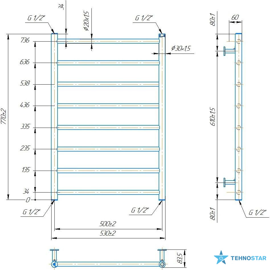 ширина – 530 мм