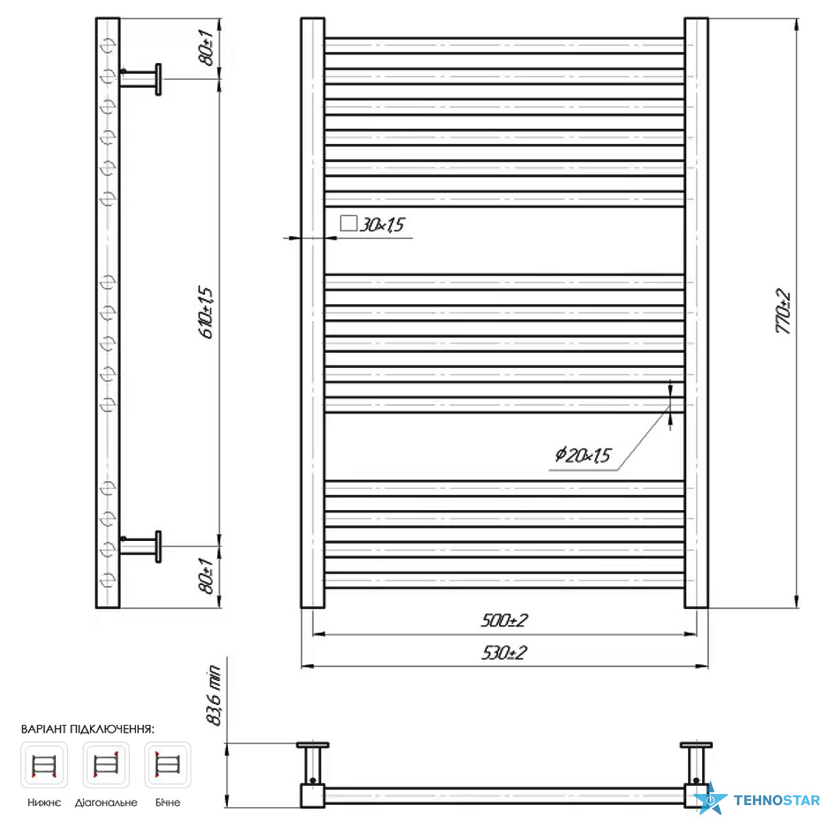 Водяний сушка для рушників Маріо INOX Гера 770х530/500 з міжосьовою відстанню для підключення 500 мм виготовлена з нержавіючої сталі АІSI 304. Одна з найпопулярніших моделей виробничого підприємства Mario. Сушка для рушників виконана в класичному строгому стилі з урахуванням сучасних дизайнерських трендів. Виріб розбитий на кілька секцій, що дозволяє зручніше сушити рушники. Стильний і функціональний сушка для рушників обігріє і створить затишну атмосферу у вашій ванній кімнаті.