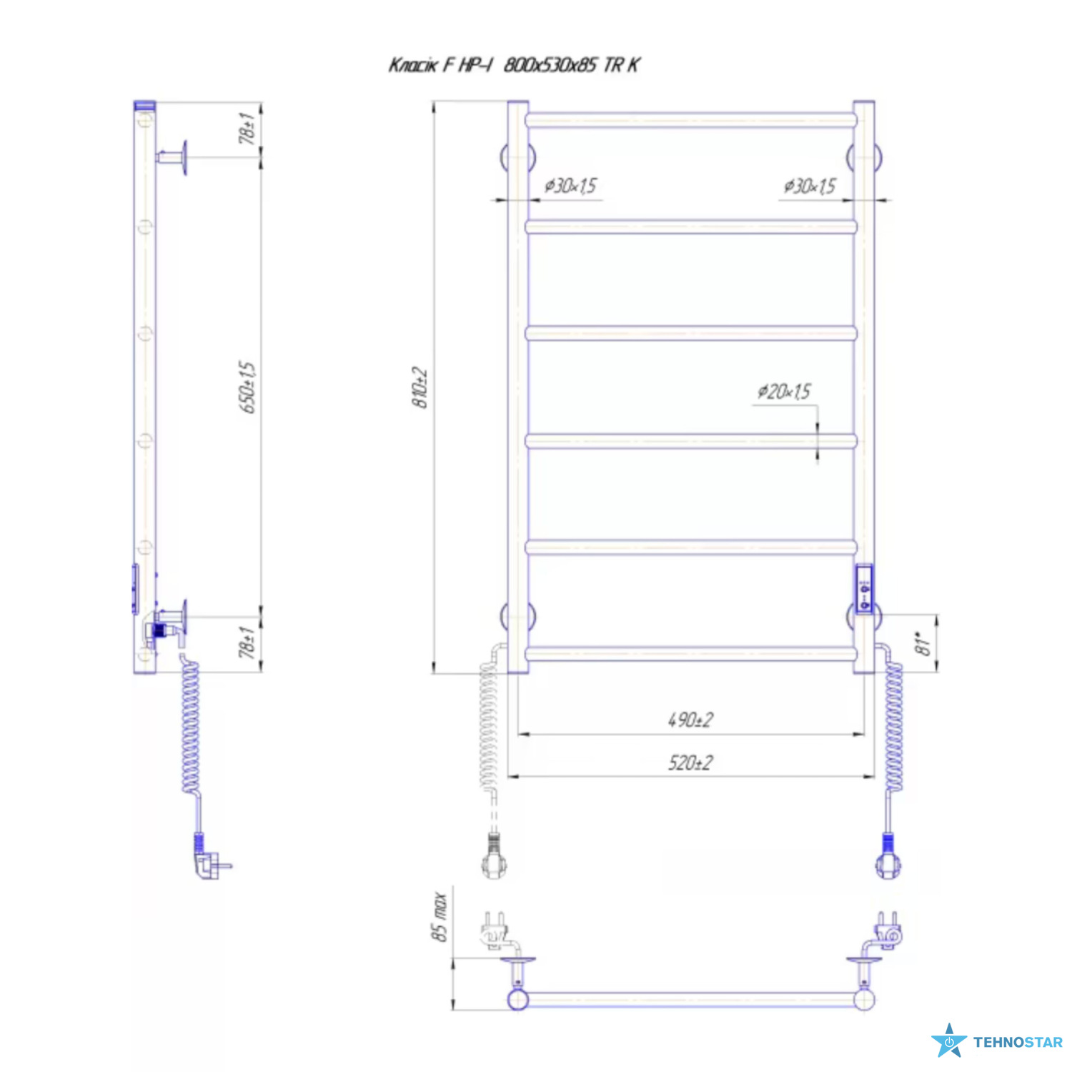 Електросушарка для рушників побутова Класик F НР-I 800х530/75 TR K.