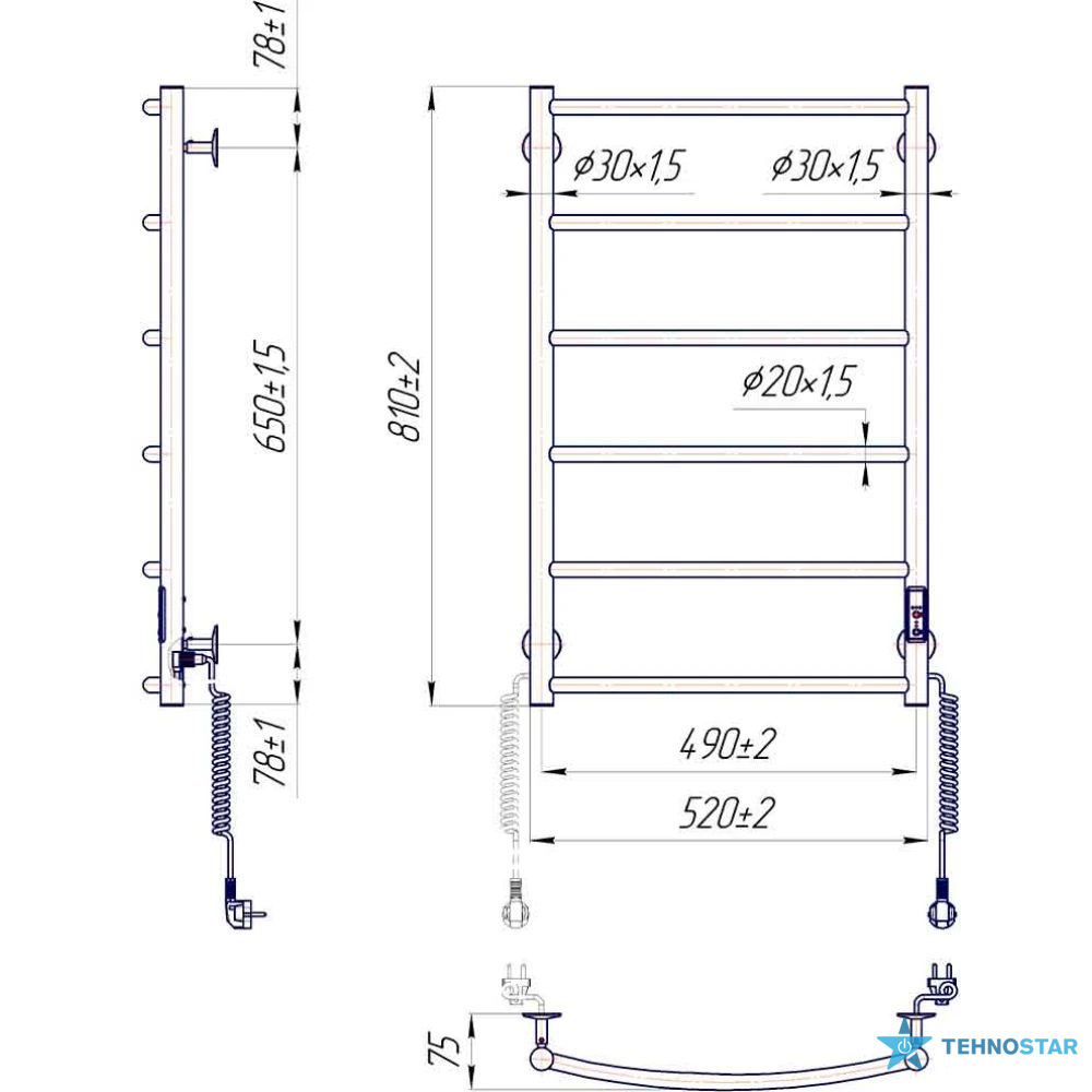 Пристрій має 6 секцій, що дозволяє рівномірно розподіляти тепло та ефективно використовувати простір. Електронний тип управління забезпечує простоту та зручність в експлуатації. Розміри сушки для рушників складають 810 x 520 x 85 мм, що робить його компактним і придатним для встановлення у ванній кімнаті будь-якого розміру. Розміщення вимикача праворуч забезпечує зручність використання та ергономічність.