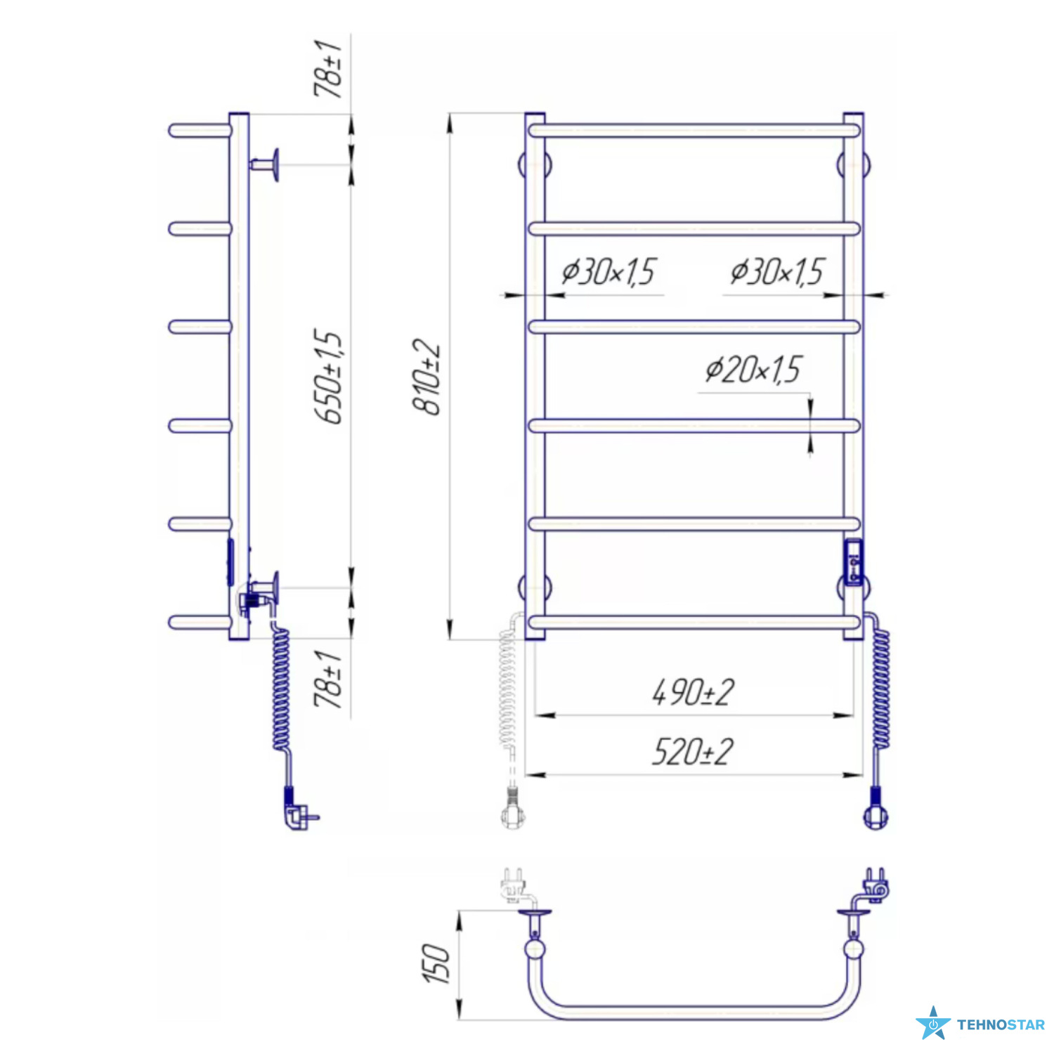 Електрорушникосушка побутова Стандарт НР-І 800х530/150 TR К.;