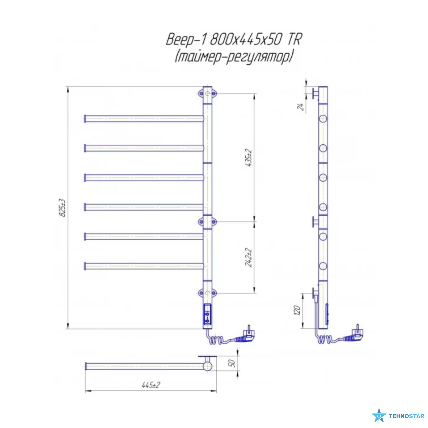 Ця модель має 6 секцій, що дозволяє розмістити на ньому кілька рушників одночасно, забезпечуючи їх швидке сушіння. Розміри сушки для рушників складають 800 х 445/55 мм, що робить його компактним і зручним для встановлення навіть у невеликих ванних кімнатах.