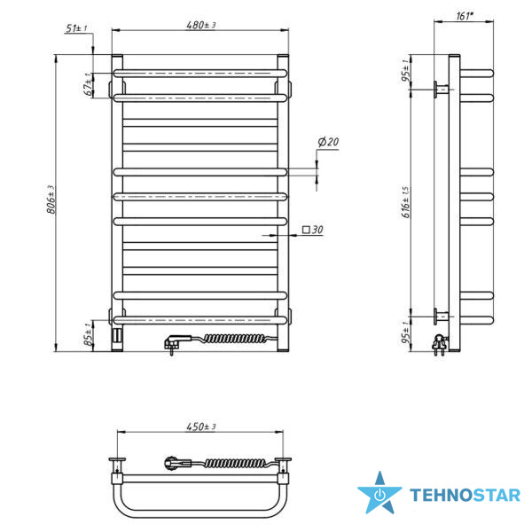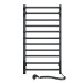 Рушникосушка Navin Грандіс 480х800 Sensor (розташування шнура з вилкою — праворуч; колір — чорний муар) від українського виробника NAVIN виготовлена з вуглецевої сталі, яка відрізняється високою якістю й міцністю. Модель має надійне порошкове покриття. Товщина стінки колекторів (стійок) і перемичок сушки для рушників дорівнює 1,5 мм.