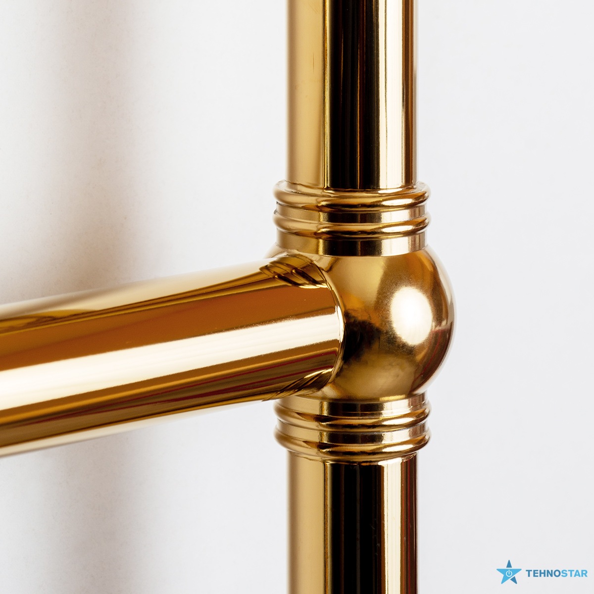 Полотенцесушитель Ретро 500х1000 (покрытие — под золото) от украинского производителя NAVIN изготовлен из пищевой нержавеющей стали марки AISI 304, которая отличается высоким качеством и прочностью, устойчива к царапинам и механическим повреждениям, а также обладает высокой антикоррозийной стойкостью. Толщина стенок полотенцесушителя составляет 2 мм. Модель имеет зеркальную золотистую поверхность, полученную путем высокоточной электроплазменной полировки.