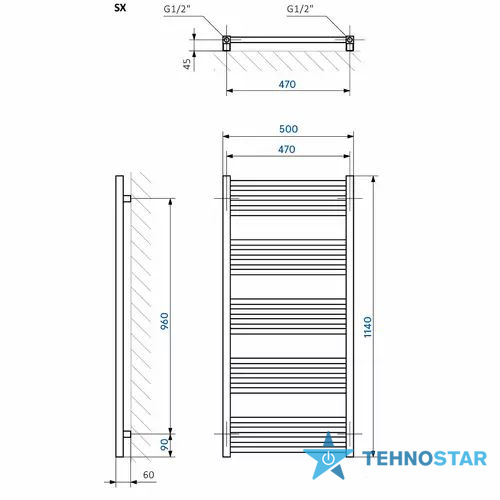 Рушникосушарка Terma WGFIN114050K916SX Fiona 1140*500