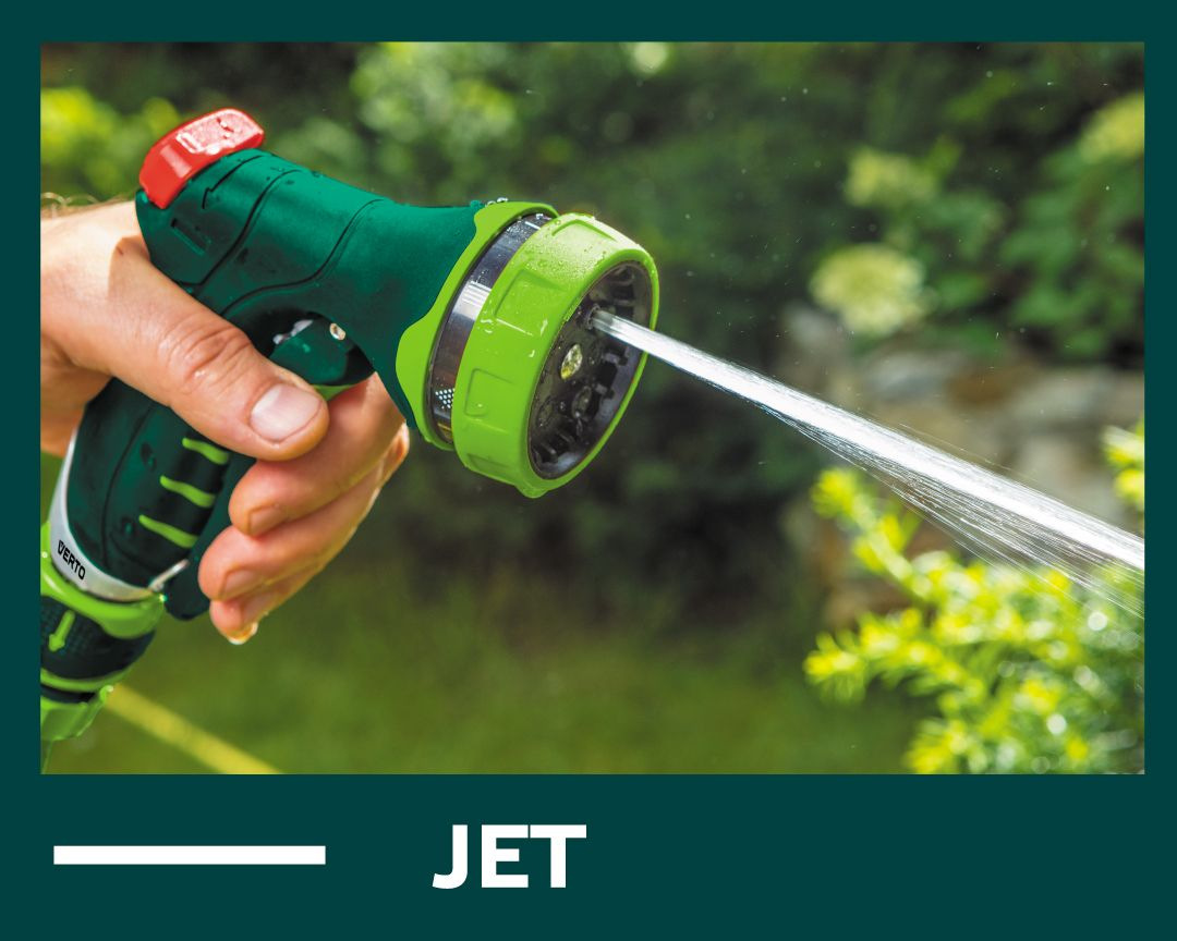 15G713). До набору входять 4 елементи: зрошувач пістолетного типу, 7 функцій, наскрізна муфта 1/2", муфта з автостопом 1/2", адаптер на кран 1/2 ".