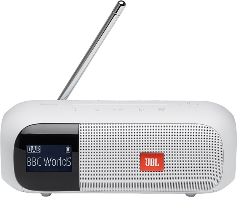 З JBL Tuner 2 ви зможете слухати улюблені радіостанції або власні плейлисти, коли завгодно. Ця поліпшена версія Bluetooth-колонки з FM-тюнером і підтримкою цифрового радіомовлення в форматах DAB / DAB + вражає своїм кришталево чистим звуком. Але тепер вона може похвалитися ще більшим дисплеєм, 12 годинами автономної роботи і захистом від води рівня IPX7. Завдяки цій акустиці ви завжди зможете налаштуватися на улюблену хвилю і насолоджуватися гарною музикою, де б не знаходилися.