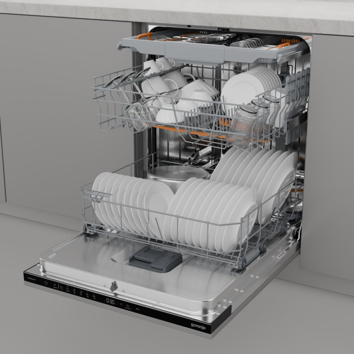 Посудомийна машина Gorenje GV16E1 UltraClean на 16 комплектів посуду із системою FlexUse, трьома кошиками та сенсорним керуванням забезпечує ефективне миття, сушіння та догляд за посудом. Оснащена програмами TotalDry, AutoProgramme, GlassProgramme, SpeedWash 15 хв, ExtraHygiene та багатьма іншими функціями для максимального комфорту і безпеки.