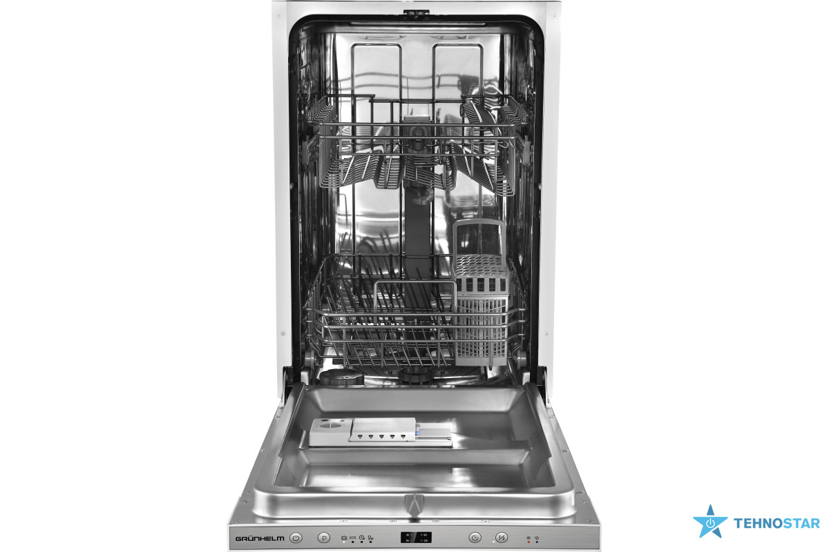 Grunhelm GDW 145 MG — це вбудовувана вузька посудомийна машина шириною 45 см, яка підійде для малогабаритних кухонь. Модель поєднує енергоефективність класу A++, тиху роботу (49 дБ) і електронне управління, що робить її зручною для щоденного використання. Місткість — 9 комплектів посуду, достатньо для невеликої сім’ї або для тих, хто рідко миє велику кількість посуду за один раз.