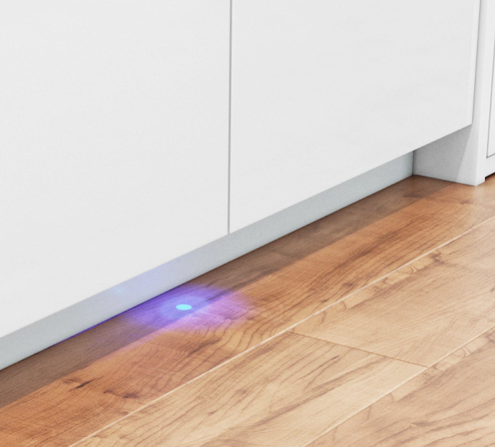 Перевірте, чи працює ваша посудомийна машина, одним лише поглядом! Floor Info Light світить блакитним променем на підлогу, поки цикл миття триває. Його легко побачити навіть із відстані. Як тільки миття завершиться й посуд буде готовий до вивантаження, світло вимкнеться. Тож більше не доведеться покладатися на інтуїцію!