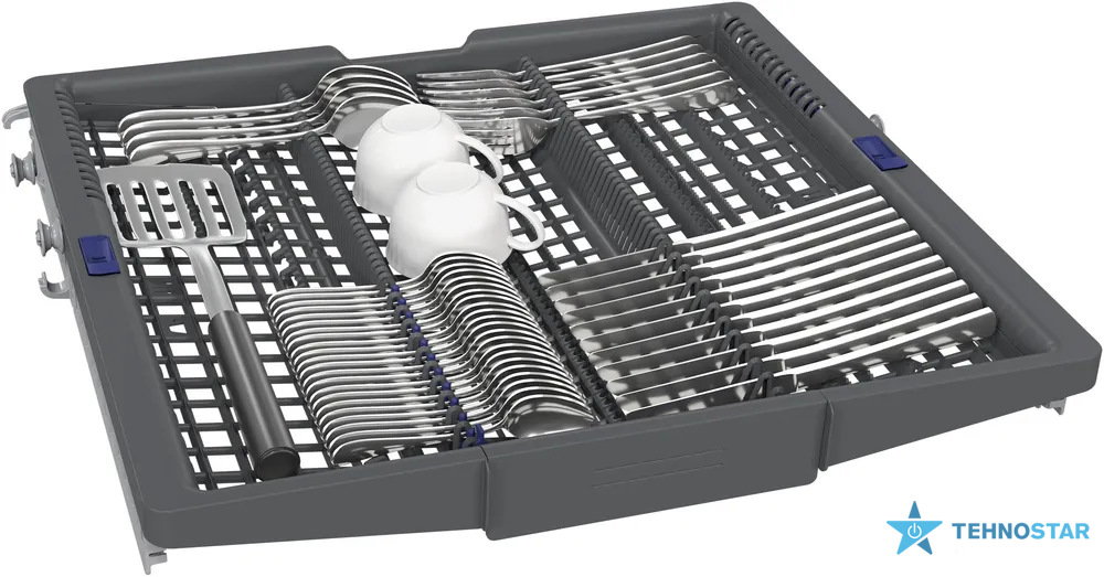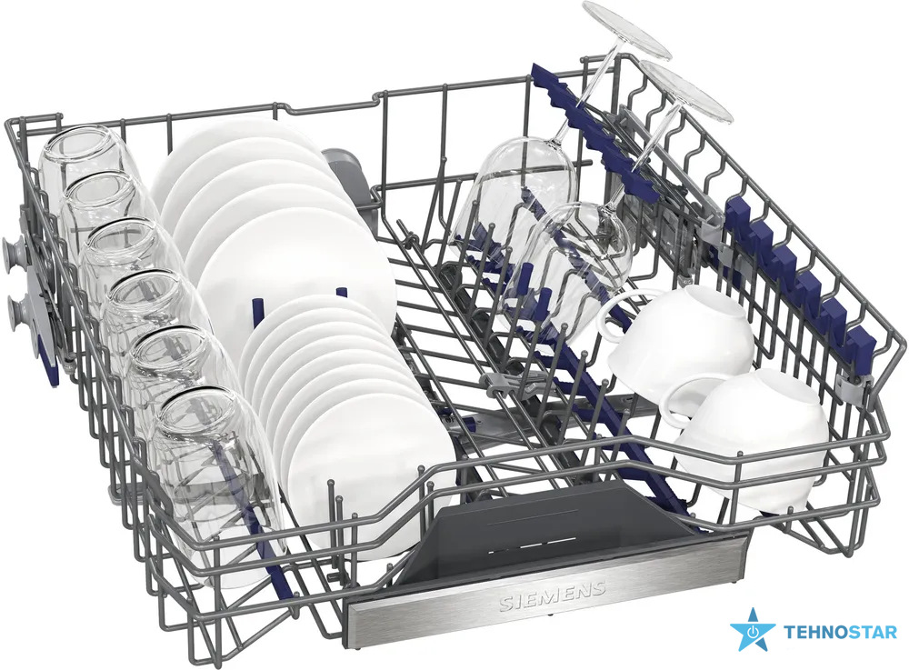 Модель обладнана просторим внутрішнім відсіком із регульованими полицями, що дозволяє оптимально розміщувати тарілки, каструлі, склянки та столові прибори. Спеціальний лоток для столових приборів забезпечує зручність і швидкість завантаження. Siemens SN87TX02CE підтримує різні програми миття: інтенсивну, економічну, делікатну та швидку, що допомагає заощаджувати воду та електроенергію, адаптуючи цикл під конкретні потреби.