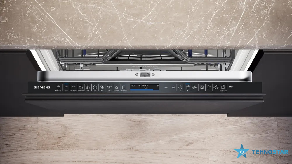 Посудомийна машина Siemens SN87TX02CE поєднує передові технології та стильний дизайн, роблячи процес миття посуду простим і комфортним. Панель керування з інтуїтивними сенсорними кнопками та цифровим дисплеєм дозволяє легко вибирати режими миття та стежити за їх виконанням.
