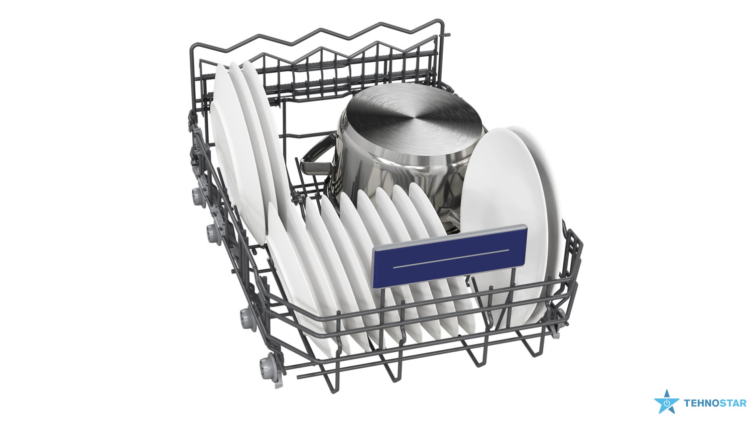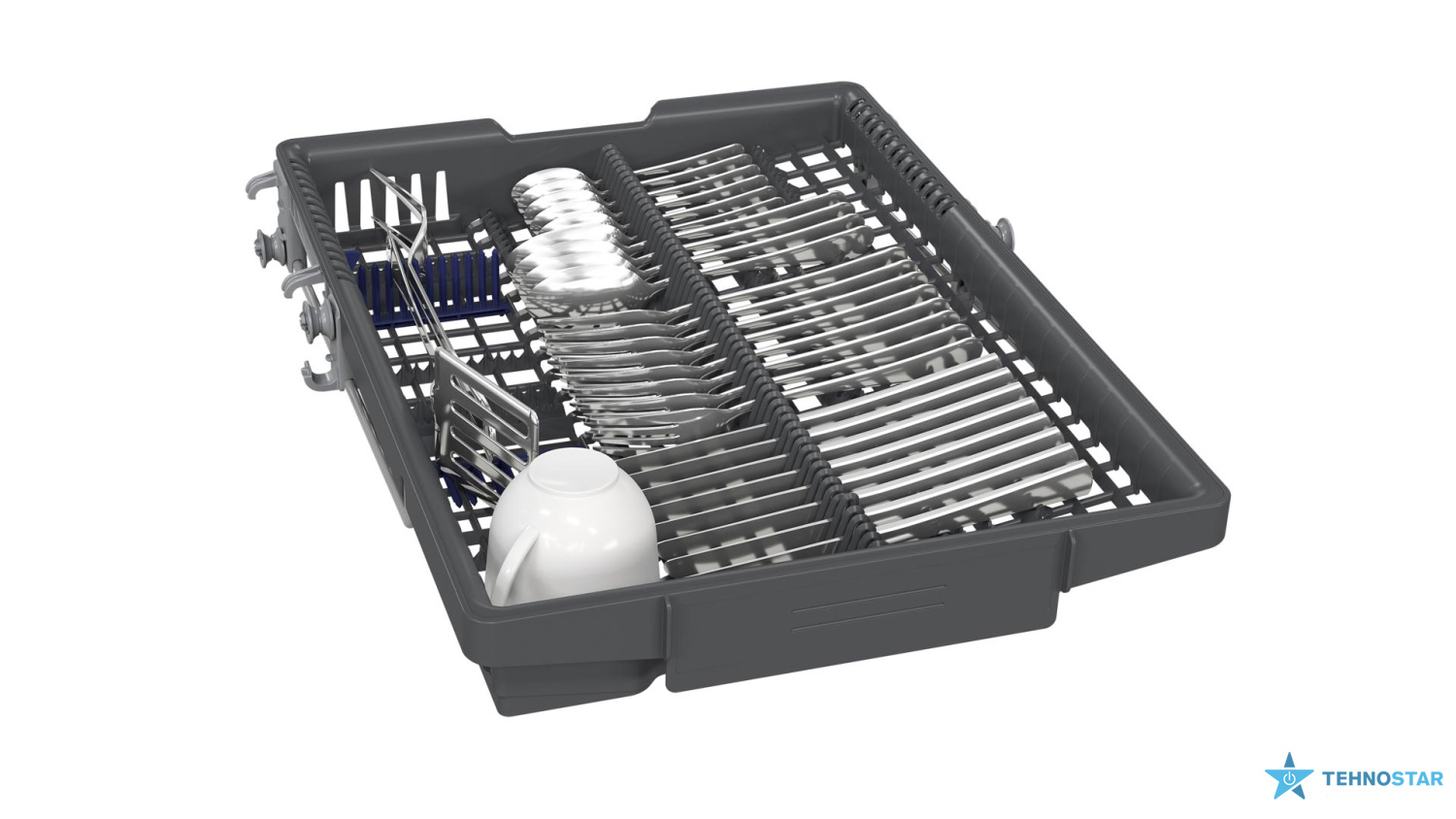 Внутрішній простір машини спроектований для зручного розміщення посуду різного розміру та форми. Висувні кошики з можливістю регулювання висоти дозволяють оптимально використовувати внутрішній об’єм, а лоток для столових приборів забезпечує зручне та ефективне миття приладів.
