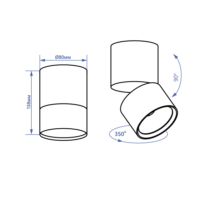 Регулювання напрямку світлового потоку. Мають звучне регулювання напрямку світлового променю: 350 по горизонталі і на 90 по вертикалі.