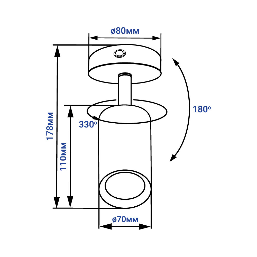Регулювання напрямку світлового потоку. Світильник обертається тому можна змінювати напрямок світла на 350 та 80 градусів у двох площинах.