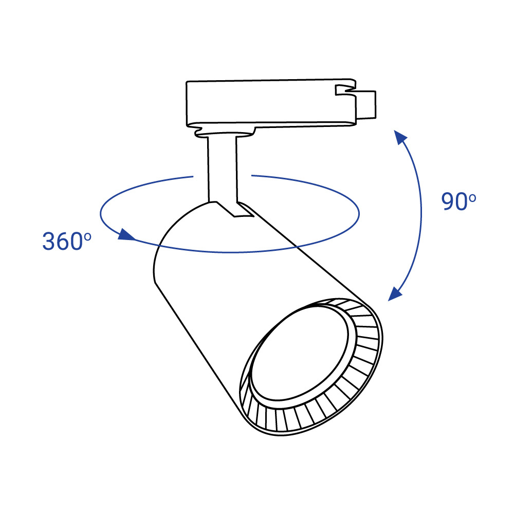 Трекові світильники Feron® мають кут розсіювання 35° та можуть переміщюватись по всій довжині шинопроводу, що дозволяє використовувати їх як для акцентної підсвітки, так і для основного освітлення. У світильників зручно регулювати напрямок світлового променя: на 360° по горизонтальній осі, на 90° по вертикальній осі. Міцний корпус із алюмінію, якісні електронні компоненти та комплектуючі забезпечують тривалий ресурс роботи в 50000 годин.