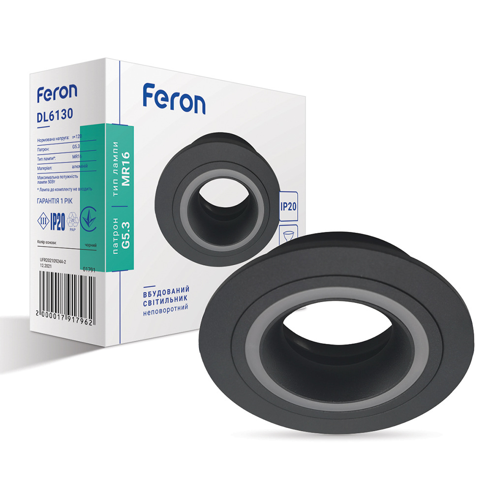 Feron Вбудований світильник Feron DL6130 під лампу чорний