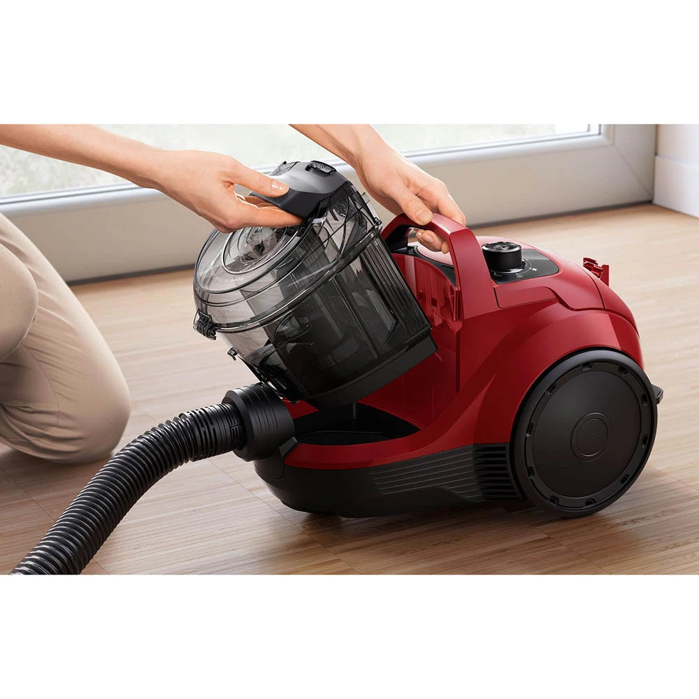 Мощный пылесос в компактном дизайне и с большим контейнером для пыли, для быстрой уборки.