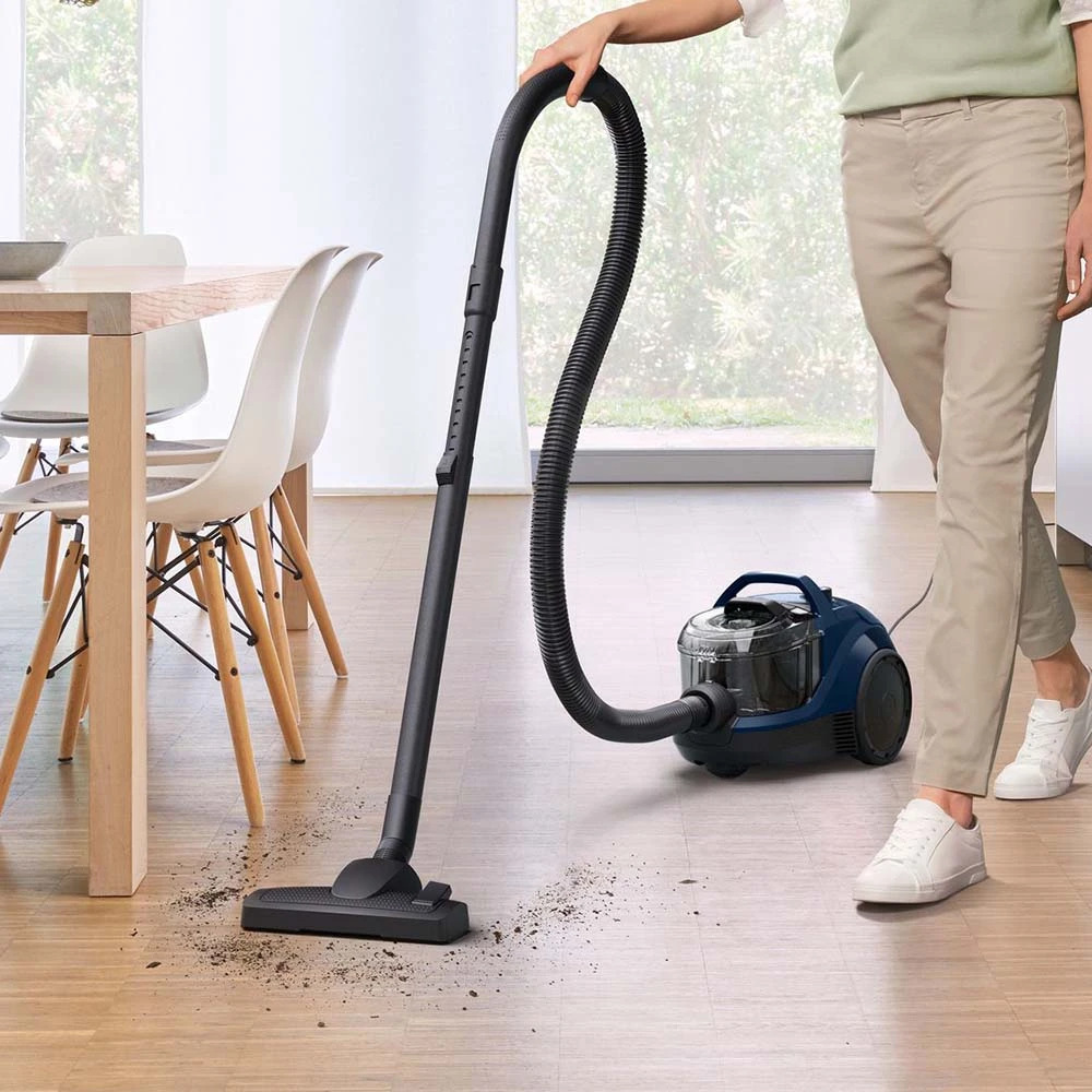 Мощный пылесос в компактном дизайне и с большим контейнером для пыли, для быстрой уборки.