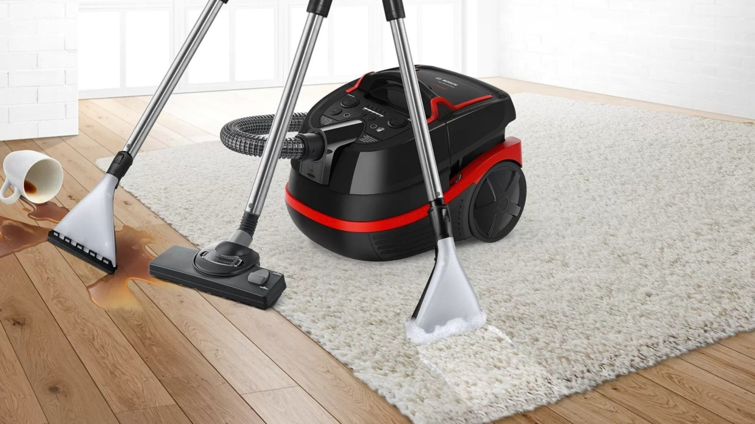 Пылесос AquaWash & Clean имеет комплект специальных аксессуаров для влажной и сухой уборки. Теперь вы можете мыть ковры и обивку, собирать жидкость и пылесосить твердые поверхности и ковры одним пылесосом.