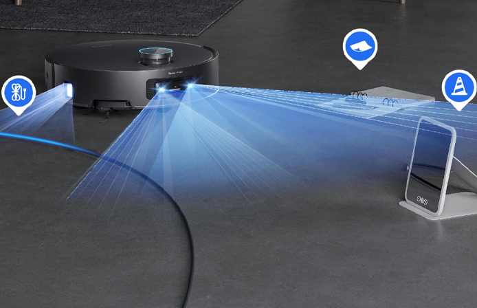 Робот-пилосос отримав удосконалену бінокулярну систему навігації, яка допомагає йому орієнтуватися в просторі максимально точно та акуратно. Завдяки двом ширококутним 3D-камерам із роздільною здатністю 1600 х 1200 та полем огляду 160°, пристрій не просто «бачить» об’єкти, а й точно оцінює їх відстань. Камери фіксують глибину коштом різниці пікселів, тому робот може легко визначати форму та розміри перешкод, навіть невеликих. Завдяки високій точності — до 1 мм — пилосос упевнено працює в кімнатах, де багато меблів чи дрібних речей, не зачіпаючи їх і не втрачаючи ефективності.
