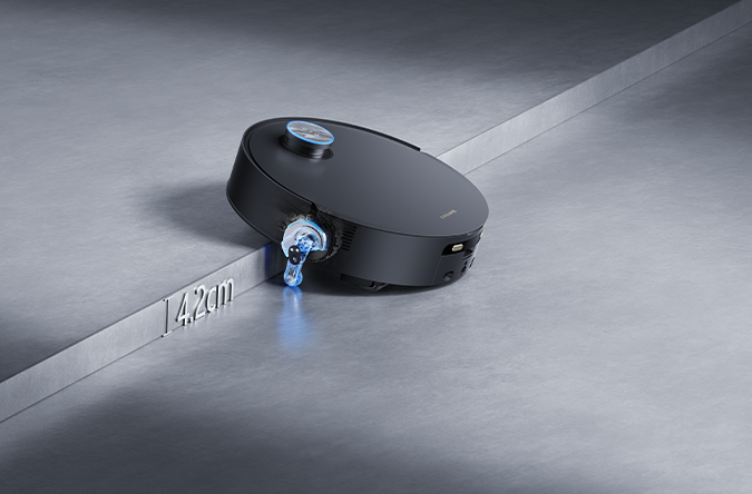 Робот-пилосос отримав модернізовану систему AgiLift з трьома незалежними колесами, яка забезпечує набагато кращу здатність долати нерівності та пороги. Кожне колесо автоматично підлаштовується під поверхню, дозволяючи роботу вибирати оптимальну траєкторію руху залежно від висоти перешкоди. Завдяки такій конструкції пристрій без зусиль справляється зі стандартними порогами та легко пересувається між кімнатами, зокрема на кухнях, у ванних кімнатах чи на балконах. Розумне шасі дає змогу проходити навіть проблемні зони — наприклад, ділянки навколо U-подібних ніжок меблів, де звичайні роботи часто застрягають. Система також здатна долати складні двошарові пороги висотою до 30 мм, забезпечуючи плавний перехід з однієї поверхні на іншу та стабільну роботу в умовах різнорівневих покриттів.