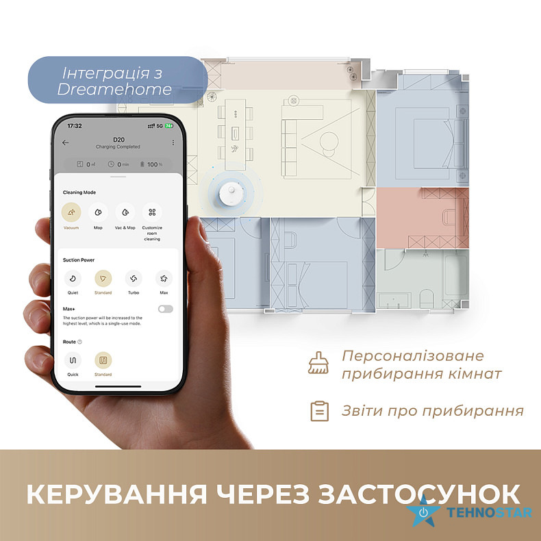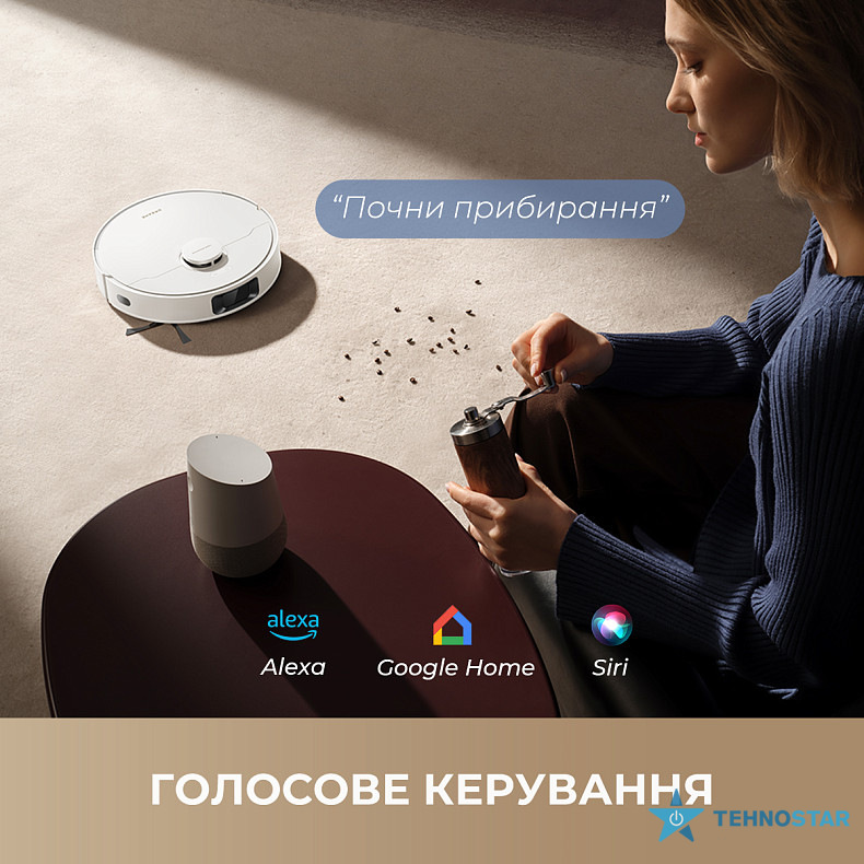 Просто виконуйте голосове керування за допомогою вбудованого помічника Alexa, Siri або Google Home. Це дозволяє запускати або зупиняти прибирання, а також керувати іншими функціями пилососа за допомогою голосових команд.