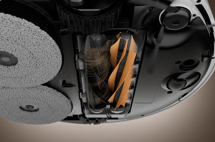 X50 Ultra Complete синхронно підіймає щітки та мийний модуль, коли це потрібно — розумно, швидко, без вашої участі. Припустимо, система виявляє зміну типу поверхні або зону, де не потрібно вологе прибирання — наприклад, на килимі. Робот миттєво активує систему підйому: ганчірки відриваються від підлоги, за потреби — бічна та центральна щітки роблять те саме. Після переходу в іншу зону, наприклад, на плитку — механізм опускається назад. Так волога ганчірка не забруднить ворс, а робот плавно проходитиме перешкоди — не зачепившись насадками за килим.