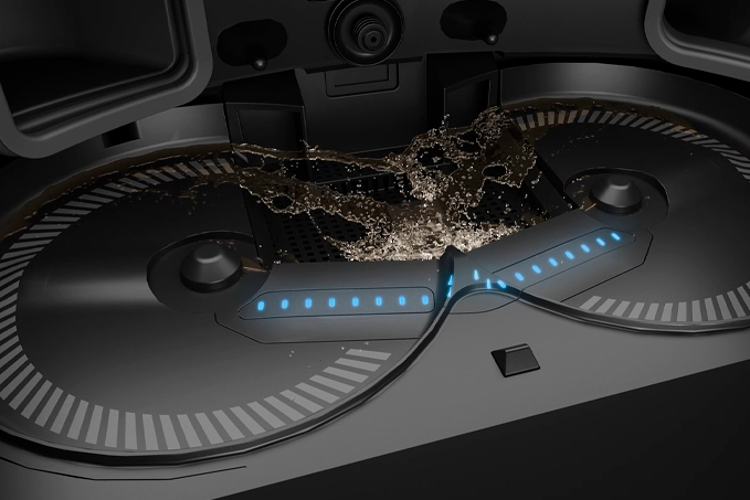 Пилосос не поширює бруд по підлозі, навіть коли стикається зі складними плямами. У разі, якщо датчики виявлять, що вода стала сильно забрудненою, система збільшить подачу води для промивання швабр. Так плями на підлозі буде прибрано ретельно, щойно чистою насадкою.