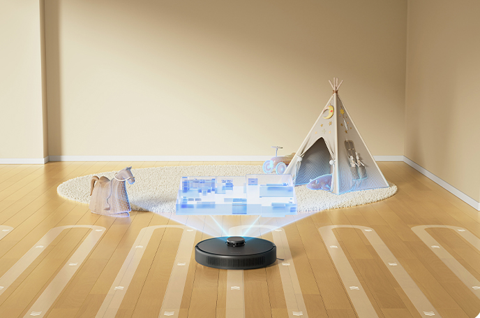 Робот-пилосос Dreame D9 MAX Gen 2 оснащений вдосконаленим лазерним датчиком LiDAR, що відмінно орієнтується в навколишньому середовищі. Цей датчик здійснює повне сканування простору на 360 градусів, створюючи докладну карту вашого будинку після першого збирання. Після цього Dreame D9 MAX Gen 2 так добре запам'ятовує ваш інтер'єр, що може ефективно обходити будь-які цільові зони, уникати перешкод та оптимізувати маршрут для максимальної ефективності. Завдяки цьому робот-пилосос забезпечує високоякісне та безперебійне прибирання кожного. куточок вашого будинку.