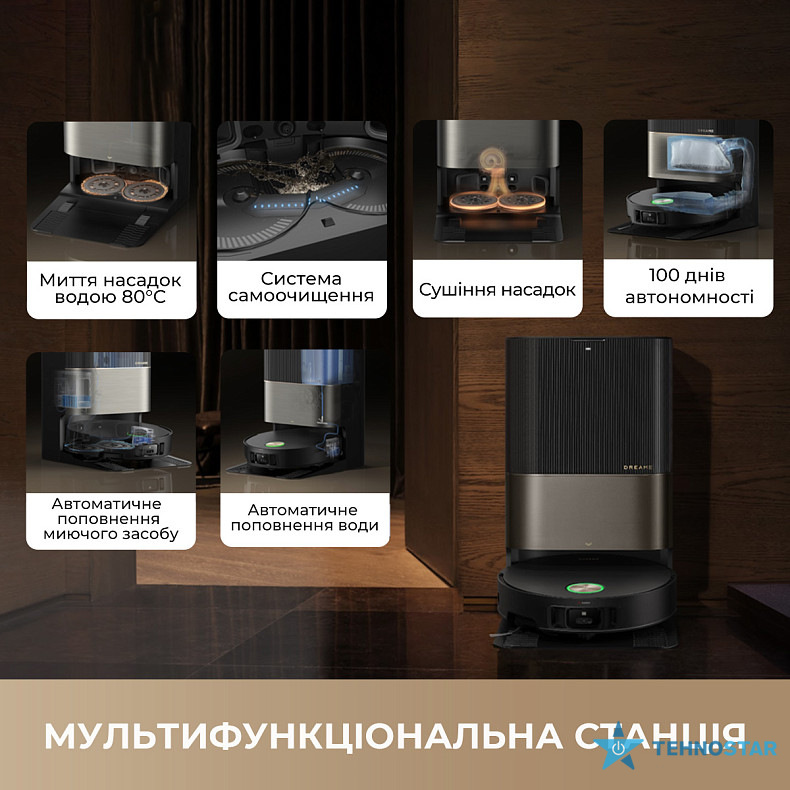 Після кожного циклу миття Dreame X50 Ultra Complete не лише очищає насадки — а висушує їх теплим повітрям, знищуючи до 99,9% бактерій. Такий підхід не залишає шансів ані мікробам, ані неприємному запаху, тож насадки завжди свіжі. УФ-лампа в зоні пилозбірника активується під час автоматичного спорожнення контейнера, що додатково дезінфікує простір всередині та запобігає розвитку бактерій у мішку.