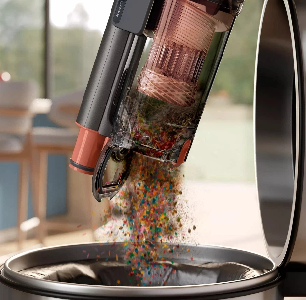 Випорожнюйте пил одним дотиком: жодного безладу, жодних клопотів. Більший пилозбірник запобігає перериванням, дозволяючи вам прибирати більше одночасно та переходити до важливіших завдань.
