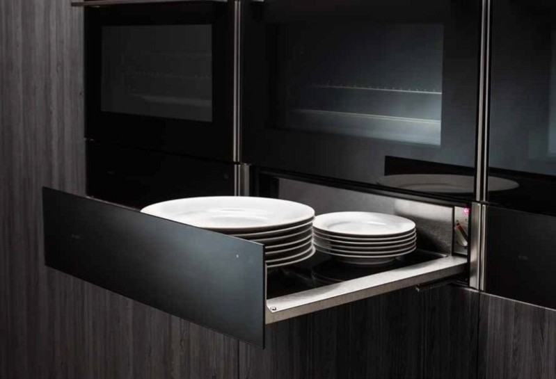 Как и многая другая кухонная техника, посудные подогреватели бывают встраиваемыми и отдельно стоящими. На кухнях небольшой площади актуальны встроенные модели. Такую бытовую технику делают из нержавеющей стали или алюминия. На переднюю панель устанавливают жаропрочное стекло. Вместимость таких кухонных машин составляет от шести до 12 комплектов посуды. В нашей стране востребованы ящики для подогрева посуды производства таких компаний как Miele, Siemtns, Bosh, Gaggenau, Electrolux и других известных фирм.