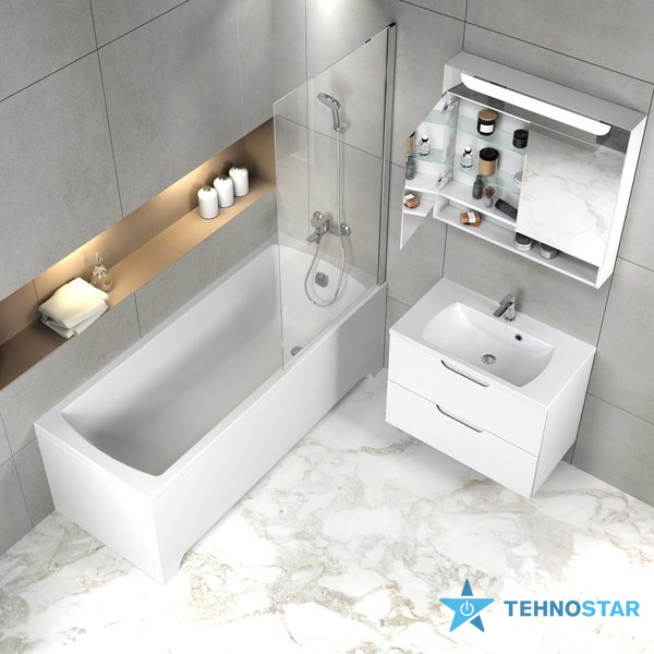 Дзеркальна шафа з вбудованим світлодіодним підсвічуванням надасть вишуканого стилю вашій ванній кімнаті. Двері, що відкриваються, оснащені дзеркалами з обох боків, а всередині шафи є дві скляні полиці.