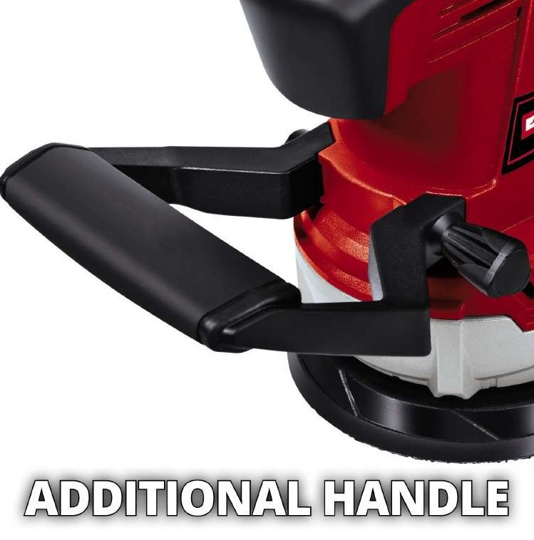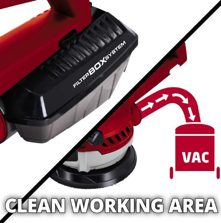 Ергономічна ручка з м'якими накладками і додаткова рукоятка забезпечують хороше захоплення руками під час шліфування та забезпечують комфортну керованість навіть під час тривалих сеансів роботи. Для виконання чистої, практично без пилу, машина оснащена пластиковою ємністю для пилу з вбудованим фільтром - таким чином, повітря залишається чистим. А завдяки адаптеру пиловидалення ви можете підключити пилосос для забезпечення максимальної чистоти. В комплект поставки входить 1 абразивний аркуш паперу для шліфування. Для акуратного і безпечного зберігання і транспортування TE-RS 40 Е поставляється в картонній коробці.