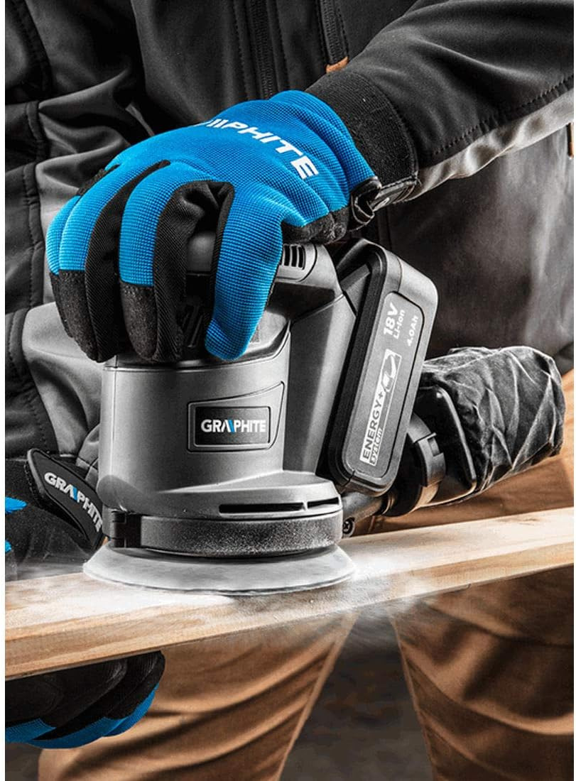 Шліфмашина ексцентрикова GRAPHITE, що працює з акумуляторними батареями 18 В Li-Ion GRAPHITE Energy+. Шліфувальна машина з підошвою діаметром 125 мм, з можливістю кріплення шліфувального паперу на липучку.