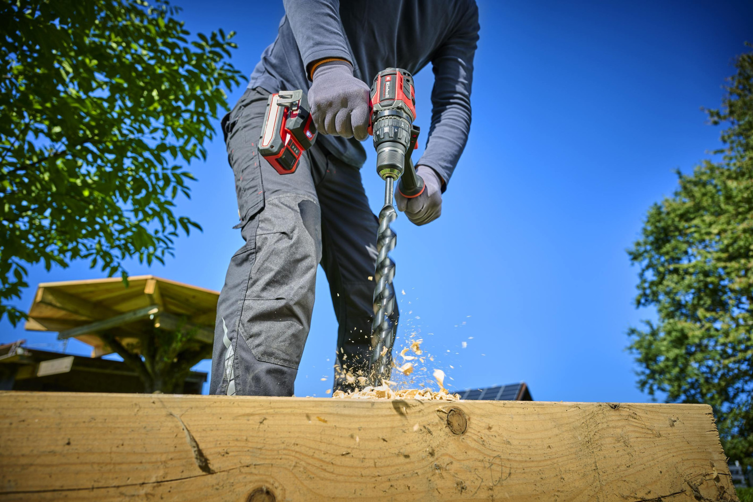 Ударний дриль-шуруповерт також пропонує режим свердління та режим свердління з ударом. Електроніка з безступінчатим регулюванням швидкості підтримує роботу відповідно до застосування та матеріалу. Одногільзовий металевий швидкозатискний патрон 13 мм з металу з функцією блокування дозволяє швидко і легко замінити насадки. Безпечна і зручна робота забезпечується додатковою рукояткою з м’якою накладкою. Світлодіодне освітлення забезпечує хороший огляд робочої зони навіть в умовах поганої видимості. Для безпечного зберігання ударну дриль можна легко закріпити на поясі за допомогою кліпси.