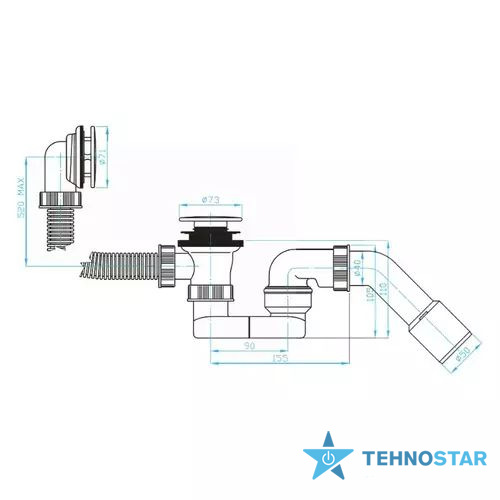 Комплектація сифон, донний клапан, переливна трубка, накладка декоративна зливу, накладка декоративна переливу, випускний патрубок, з'єднувальні елементи
