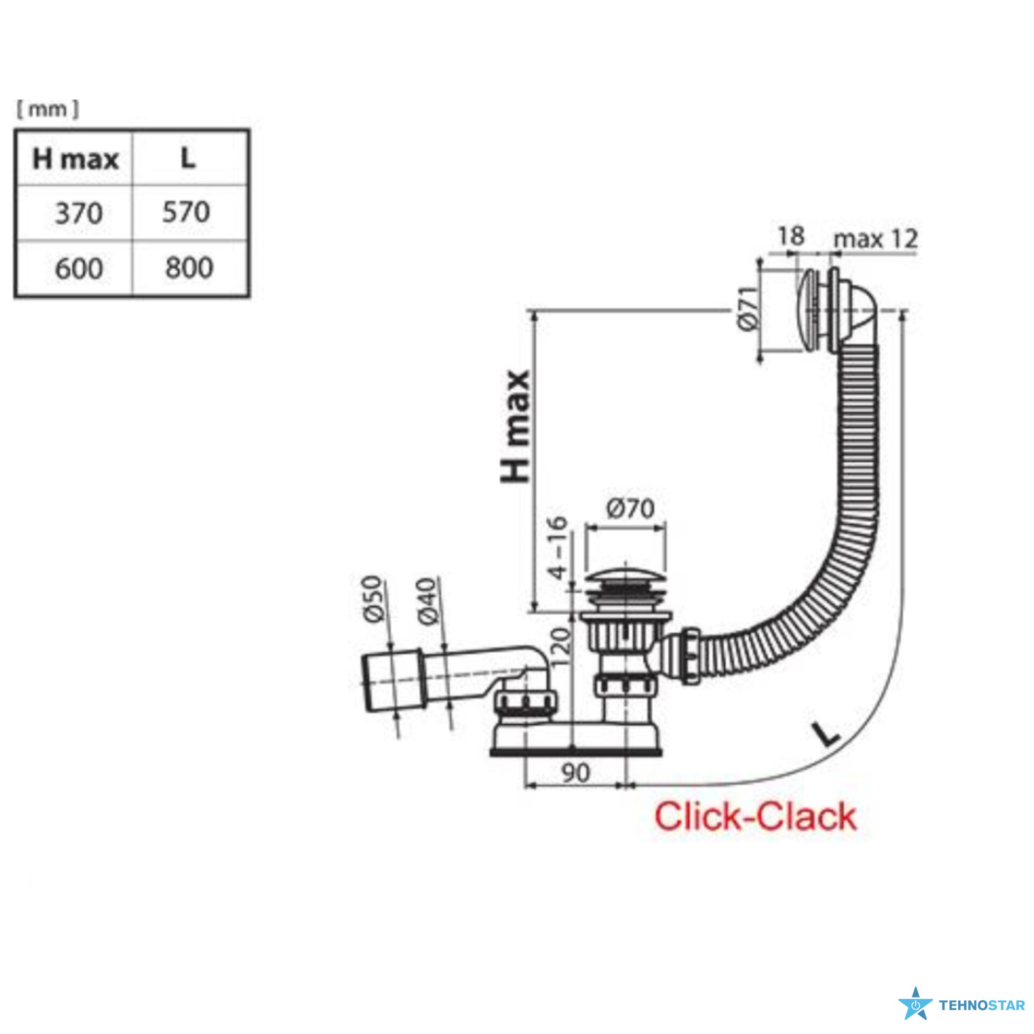 Діаметр підключення 50 мм