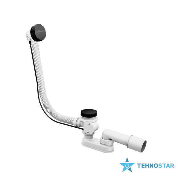 Стічний комплект для ванни з переливом чорний 800 + сток, керований тросиком