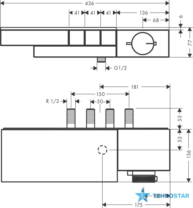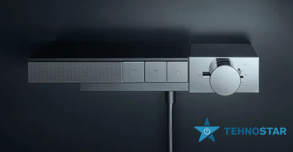 Axor Edge термостат‑поличка на 3 функції (46140000) — цей термостат‑поличка від Axor Edge — це вишукане рішення для душової системи: поєднує функціональність трьох виходів, термостатичне управління та стильний дизайн. Корпус виконаний у дзеркальному хромі, а поличка — із безпечного матового сірого скла, що додає елегантності й практичності.