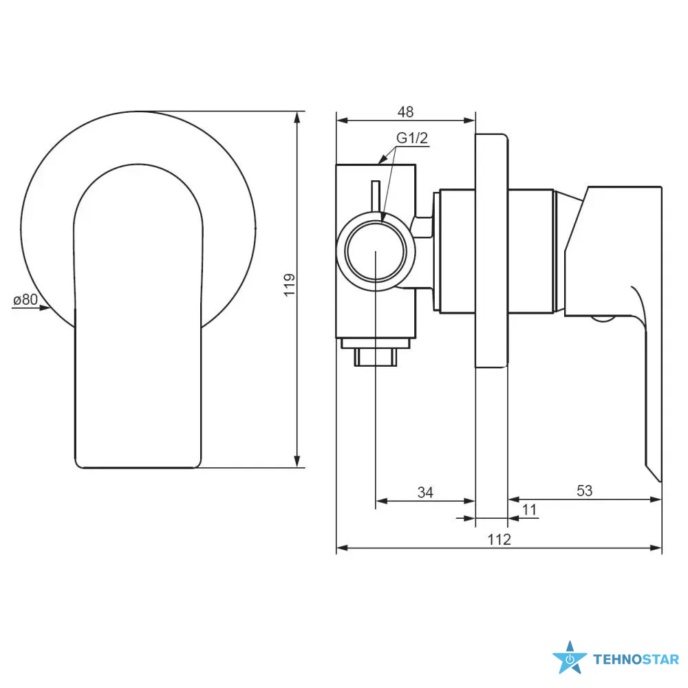 Модель виготовлена з латуні і оснащена картриджем Light Flow, який забезпечує плавне керування температурою і потоком води. Для перемикання між режимами «душ/ванна» передбачений вакуумний дивертор.