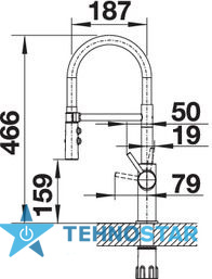 Гнучкий чорний шланг забезпечує оптимальний діапазон руху.