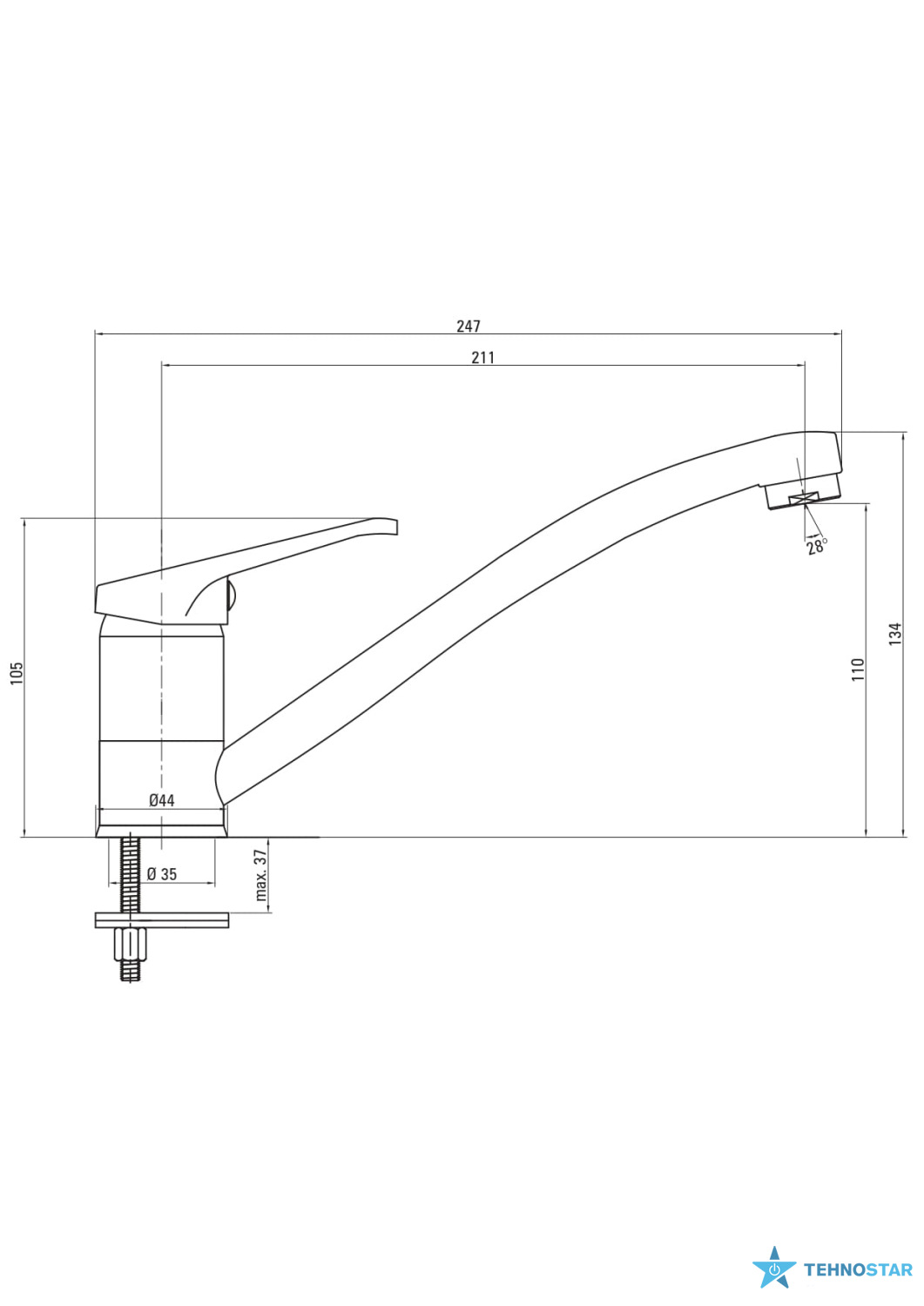 Модель встановлюється на один отвір і комплектується шлангами підведення води під діаметр 3/8".