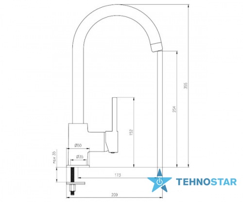 Высота смесителя, мм 355